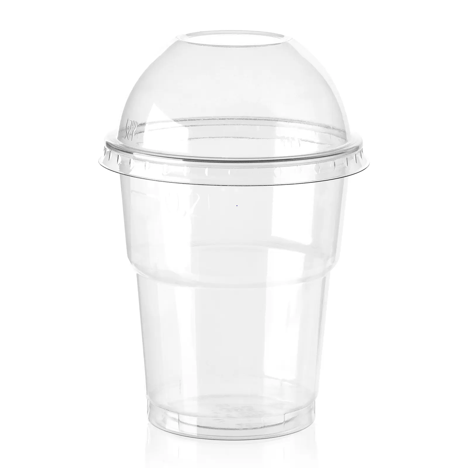 These 8oz PET clear smoothie cups are crystal clear in appearance and very strong. Great for smoothies, juices, sweets and even cakes.