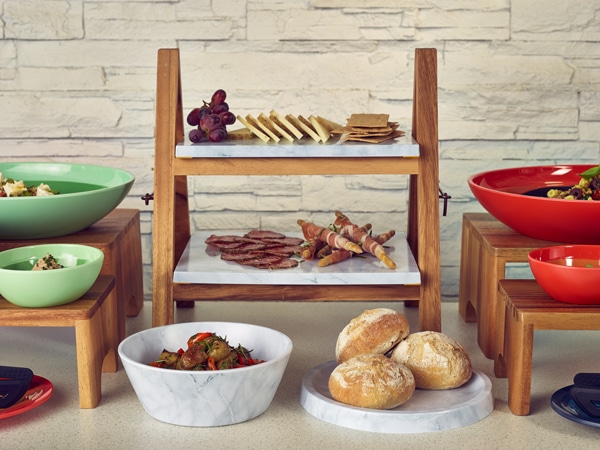 •Great with natural and straight edge slate, slate effect and wood effect melamine and marble platters
