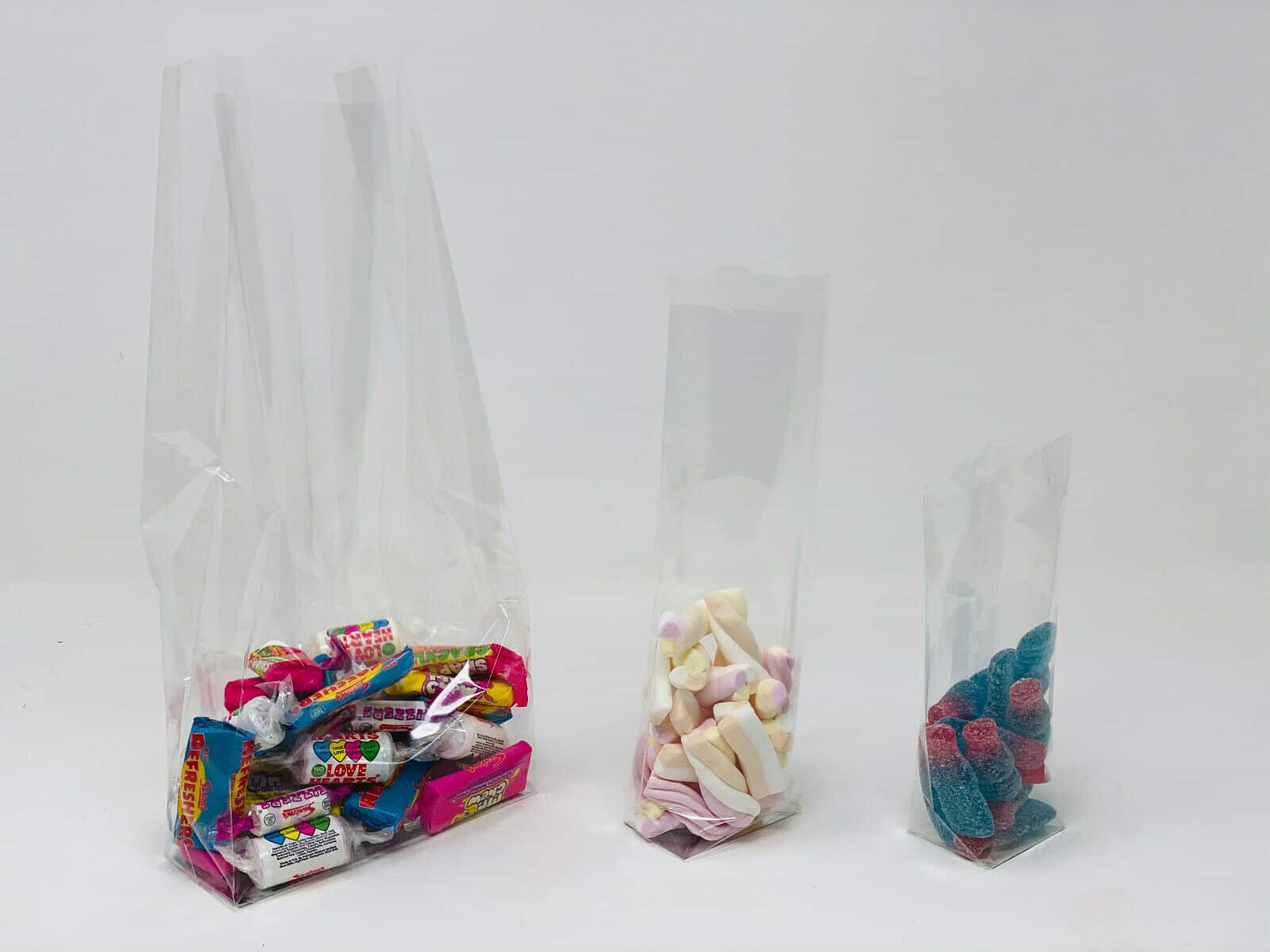 Block Bottom Clear Cellophane Bags with Cardboard Base 90mm x160mm