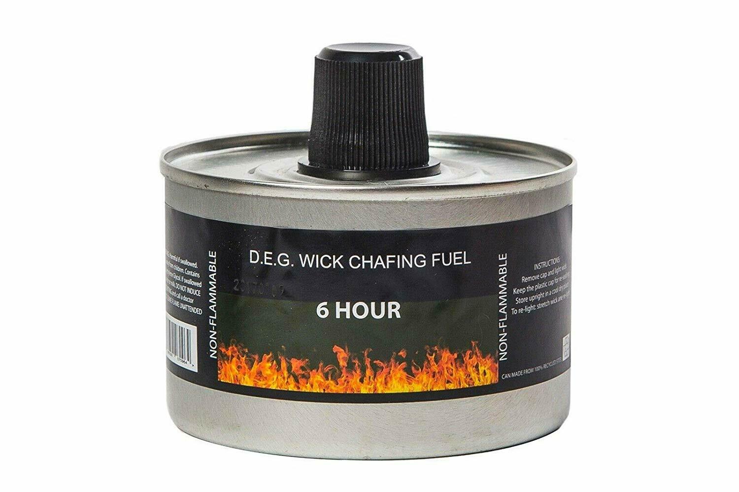 Introducing our Chafing Dish Fuel – 6 Hour Burn. Providing a consistent and reliable heat source for up to six hours, it allows you to concentrate on delivering exceptional service and creating perfect culinary experiences. The re-sealable and re-lightable wick ensures complete fuel usage, minimising waste and maximising value. Its cool-touch container ensures safety, even when in use.