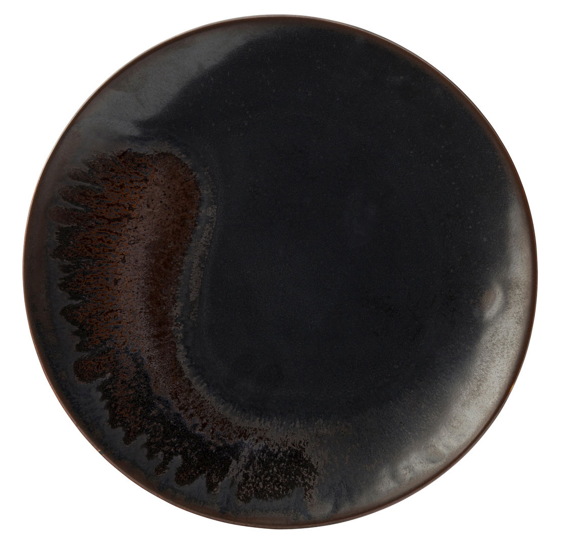 What you’ll receive is a pack of 6 Etna Plates, each measuring 9.5″ (24.5cm) in diameter. These plates are crafted from durable vitrified porcelain and feature a stunning reactive glaze with metallic copper elements, ensuring each plate possesses its own unique character. These are perfect for restaurants or those who want to add character to their dinner service.