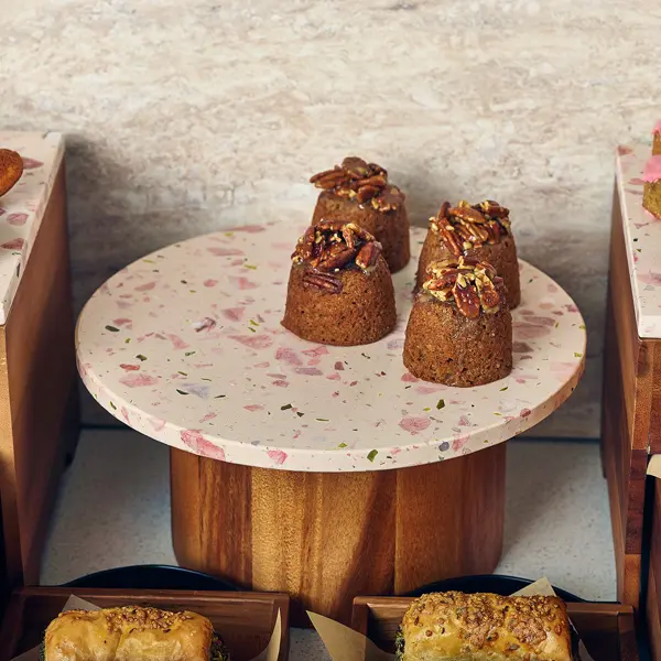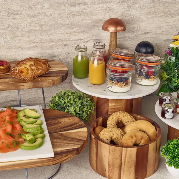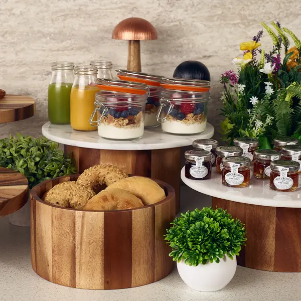 * Elevates buffet presentations with its natural acacia wood aesthetic.