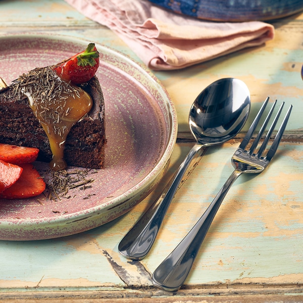 * Reduce maintenance with highly polished cutlery that resists staining and pitting.
