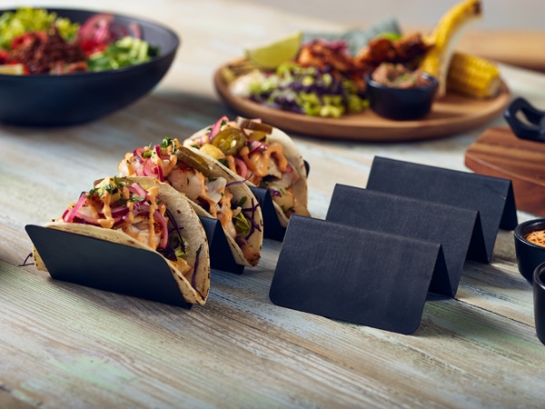 The Black Vintage Steel collection creates an industrial look to present food, perfectly suited to a wide range of popular cuisines. The Fast Food Stand is made from stainless steel and features an industrial vintage finish with a durable black PVD coating safe for direct contact with food, creating a unique way to present foods such as Hot Dogs and Tacos.