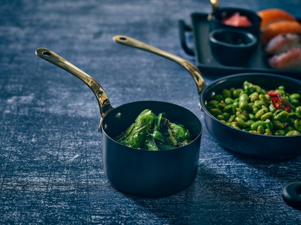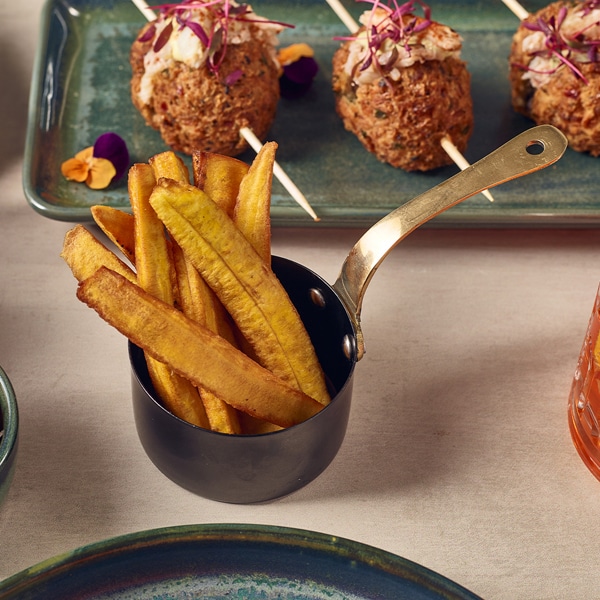 The Black Vintage Steel collection creates an industrial look enhancing food presentation, perfectly suited for a wide range of popular cuisines. The collection is made from stainless steel and features an industrial vintage finish with a durable black PVD coating permitting direct contact with food. The Mini Sauce Pans feature attractive brass handle, well suited to upscale casual dining and combines beautifully with white or reactive glazed ceramic for presenting premium sides, starters or desserts.