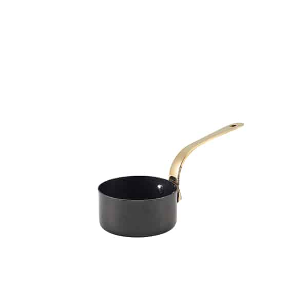 The Black Vintage Steel collection creates an industrial look enhancing food presentation, perfectly suited for a wide range of popular cuisines. The collection is made from stainless steel and features an industrial vintage finish with a durable black PVD coating permitting direct contact with food. The Mini Sauce Pans feature attractive brass handle, well suited to upscale casual dining and combines beautifully with white or reactive glazed ceramic for presenting premium sides, starters or desserts.