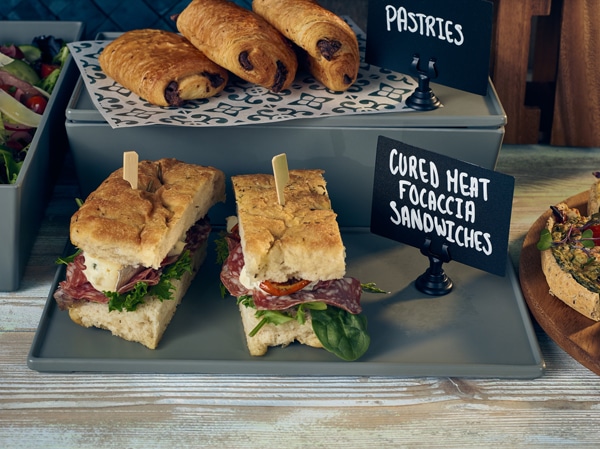 •Can be used as a platter for displaying food or used as a lid with the Buffet Boxes