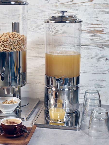 The finest hospitality businesses understand that every detail contributes to the overall guest experience, and presentation is paramount. By investing in elegant and efficient service solutions, you’re not just serving juice; you’re conveying a commitment to quality and customer satisfaction. We Can Source It streamlines the procurement process, delivering premium buffet and catering solutions, sourced with expertise and an unwavering commitment to quality. Our global network and meticulous quality control ensure that every product meets the high standards your business demands, allowing you to focus on creating memorable experiences for your clientele. The GenWare Stainless Steel Juice Dispenser 7L offers a sleek and practical solution for serving refreshing beverages. Featuring a durable polycarbonate body and a polished stainless steel base, this dispenser combines modern aesthetics with reliable functionality. Its user-friendly tap and included drip tray ensure mess-free service, while the removable body simplifies cleaning and maintenance. The included ice pack keeps beverages cool, maintaining their refreshing taste throughout service.
