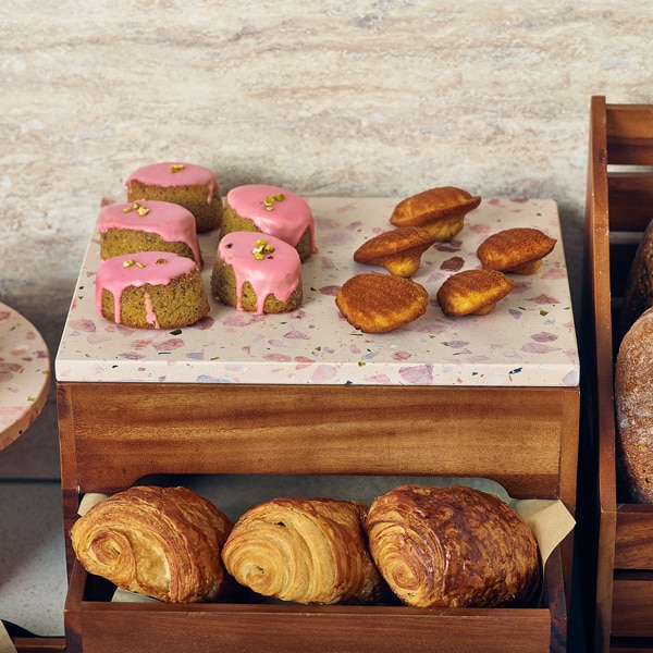 GenWare Terrazzo Platters are a multifunctional product used for buffets, coffee shop displays or tabletop food presentation. The platters are made of terrazzo, a composite material consisting of cement and small marble chips in a variety of colours resulting in individual characteristics across every piece. Terrazzo is a durable and pleasingly vibrant material that will bring a touch of colour to food presentation.
