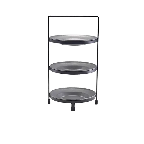 The Three-Tier Plate Stand is a modern take on traditional Afternoon Tea Stands to not only create a fun plating display but to also save table space. Constructed from industrial powder coated steel, the plate stand holds our 20.5cm Terra Porcelain Presentation Plates making this great for buffet display or for presenting a variety of dishes at the table. The stand comes complete with silicon feet for added stability and to protect table surfaces.