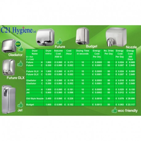 We achieve this by meticulously sourcing only the best hand dryers, focusing on units that provide exceptional performance and long-term value. The Gladiator Hand Dryer White stands out with its innovative design and energy-saving features, delivering a swift and hygienic hand-drying experience while minimising environmental impact and running costs.