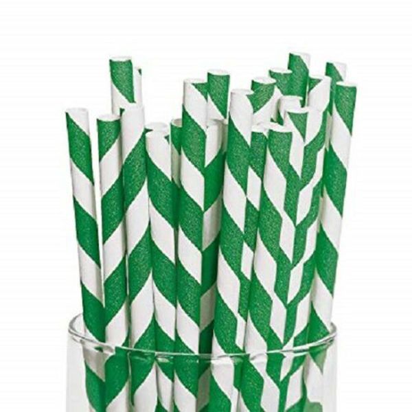Straw paper, Green and White Striped Paper Straws 8″ (20cm) Biodegradable Compostable Eco-Friendly 6mm Bore.
