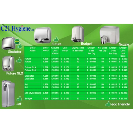 * Enjoy ultra-fast drying times (under 15 seconds) for reduced queueing and improved washroom efficiency.