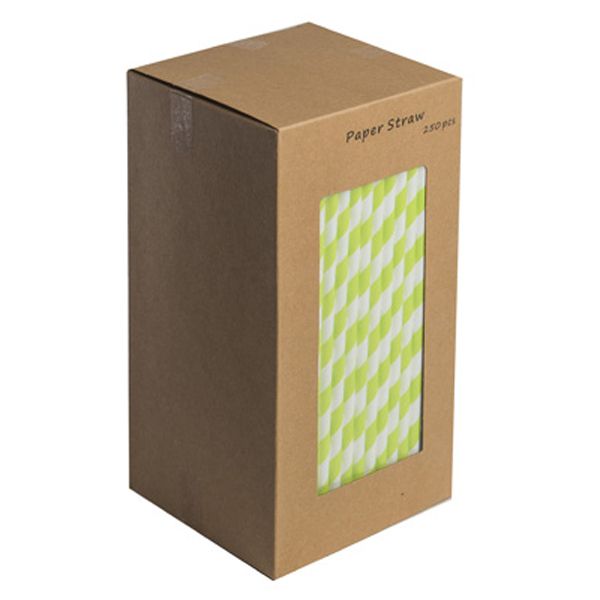 Lime Green and White Striped Paper Straws 8″ (20cm) 6mm Bore