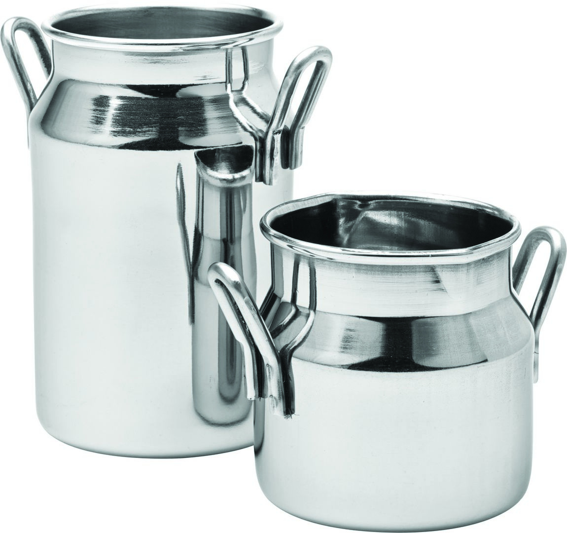 Milk churns bring a unique touch to your table setting or hot drinks service. With a 2.5oz capacity, these stainless steel churns are perfect for serving milk or cream. Their compact design (50mm length and 70mm diameter) makes them easy to handle while adding a vintage charm to any cafe or restaurant atmosphere.