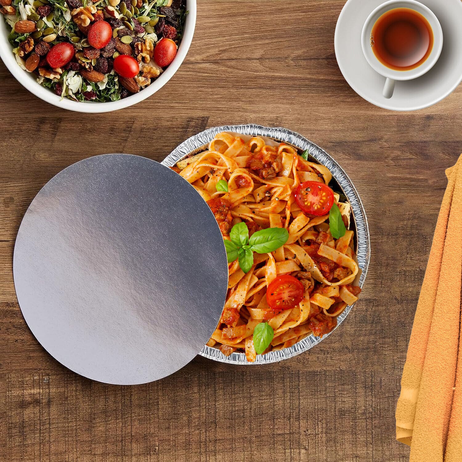This set features our dependable No 12 Aluminium Foil Food Containers & Card Lids. Each container offers a substantial 1000cc capacity, ideal for diverse culinary applications. The robust aluminium build provides exceptional durability, resisting deformation, whilst the tightly fitting, recyclable cardboard lids create a dependable, leak-resistant closure. Their circular design maximises stackability and simplifies storage. Perfect for professional catering, meal preparation, and smart household organisation.