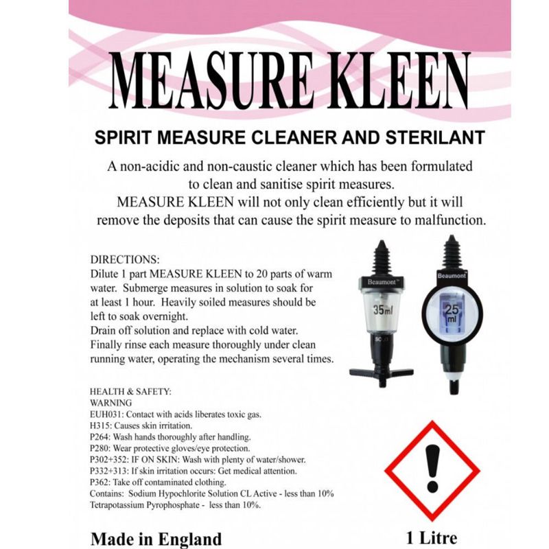 Optic Spirit Measure Cleaner & Sterilant 1 Litre Bottle Kleen Pub Bar Equipment