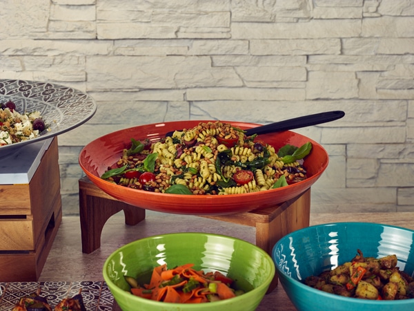 Our Casablanca low bowl in orange has been produced using advanced melamine manufacturing techniques, resulting in products that are virtually indistinguishable from their ceramic counterparts.Made from 100% melamine, the 3.5L volume Casablanca orange low bowl is break resistant and easy to clean, making them ideal for everyday use.This vibrant colour is ideal for displaying a wide variety of fresh produce.The durable glazed effect orange bowl has subtle ripples to help create an authentic looking ceramic bowl, but with the benefits of melamine.