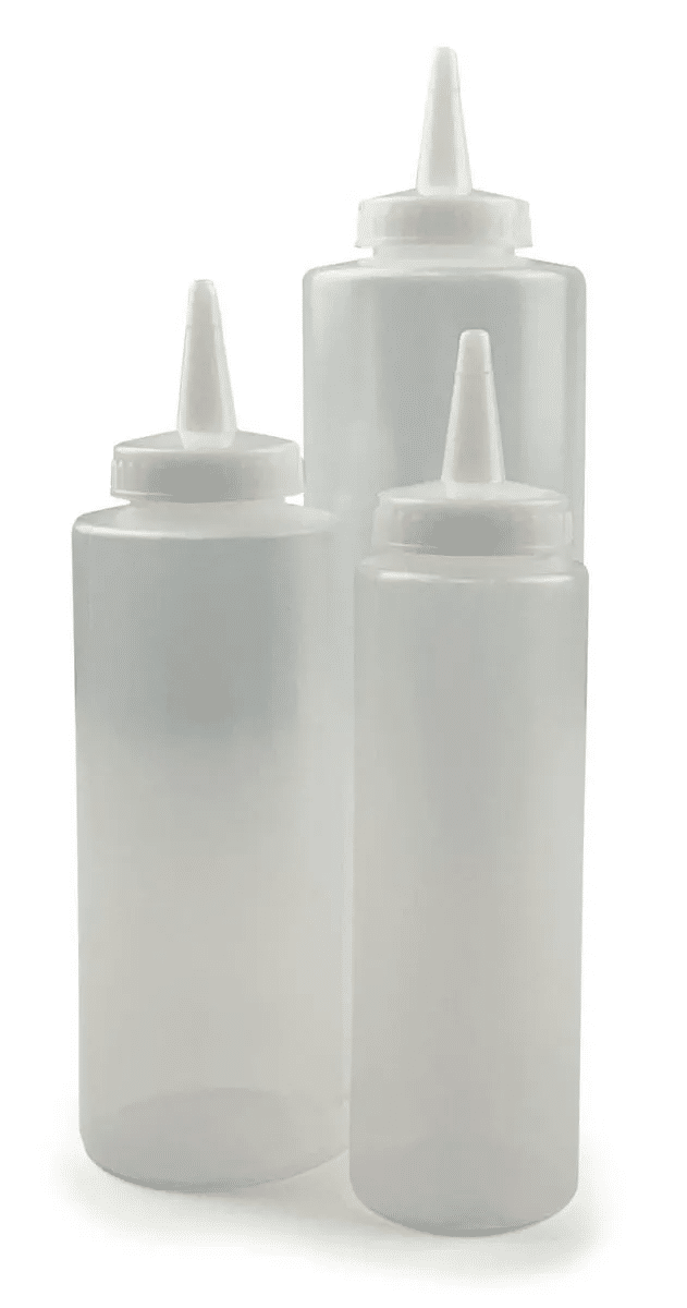 These Plastic Squeeze Bottles With Nozzle are available in Clear, Yellow, and Red, and in sizes 8oz, 12oz, 24oz, and 32oz. Constructed from robust, dishwasher-safe polyethylene plastic, these bottles feature a secure screw-on spout for controlled dispensing and minimal mess. They’re the ideal solution for any kitchen requiring efficient and hygienic storage and dispensing of liquids.