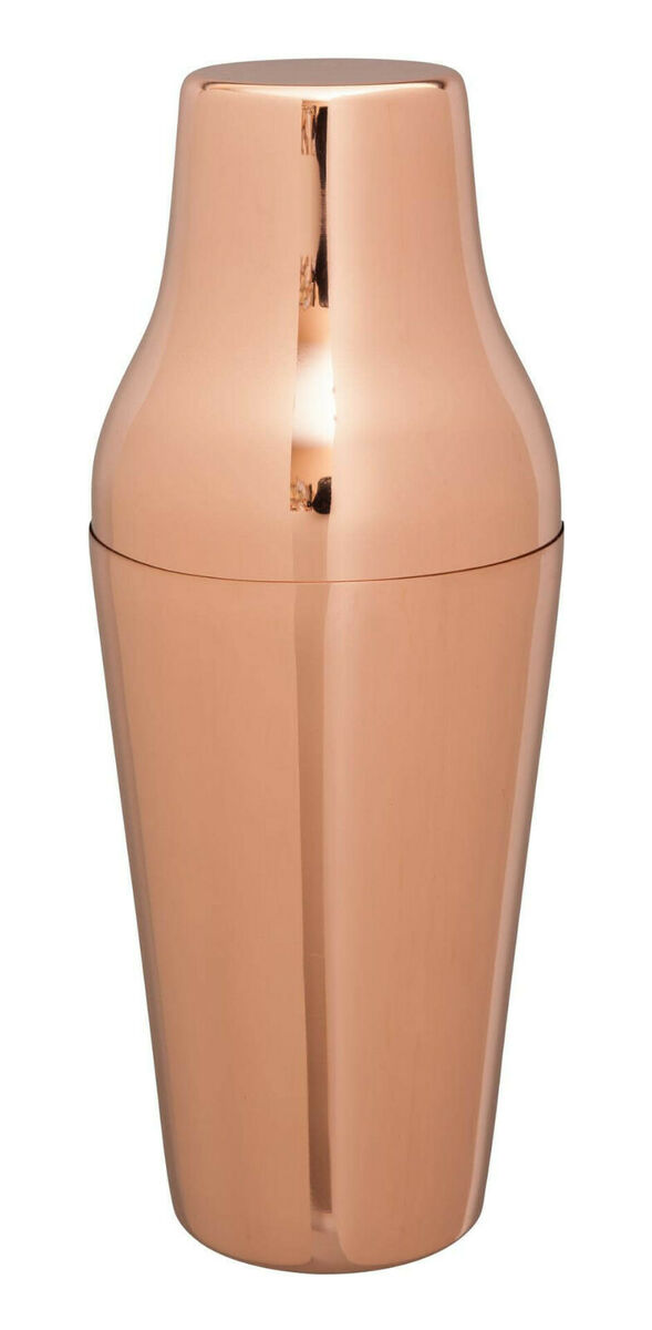 This two piece Mezclar French Copper Nice Cocktail Shaker can be used for shaking cocktails before straining into a glass.