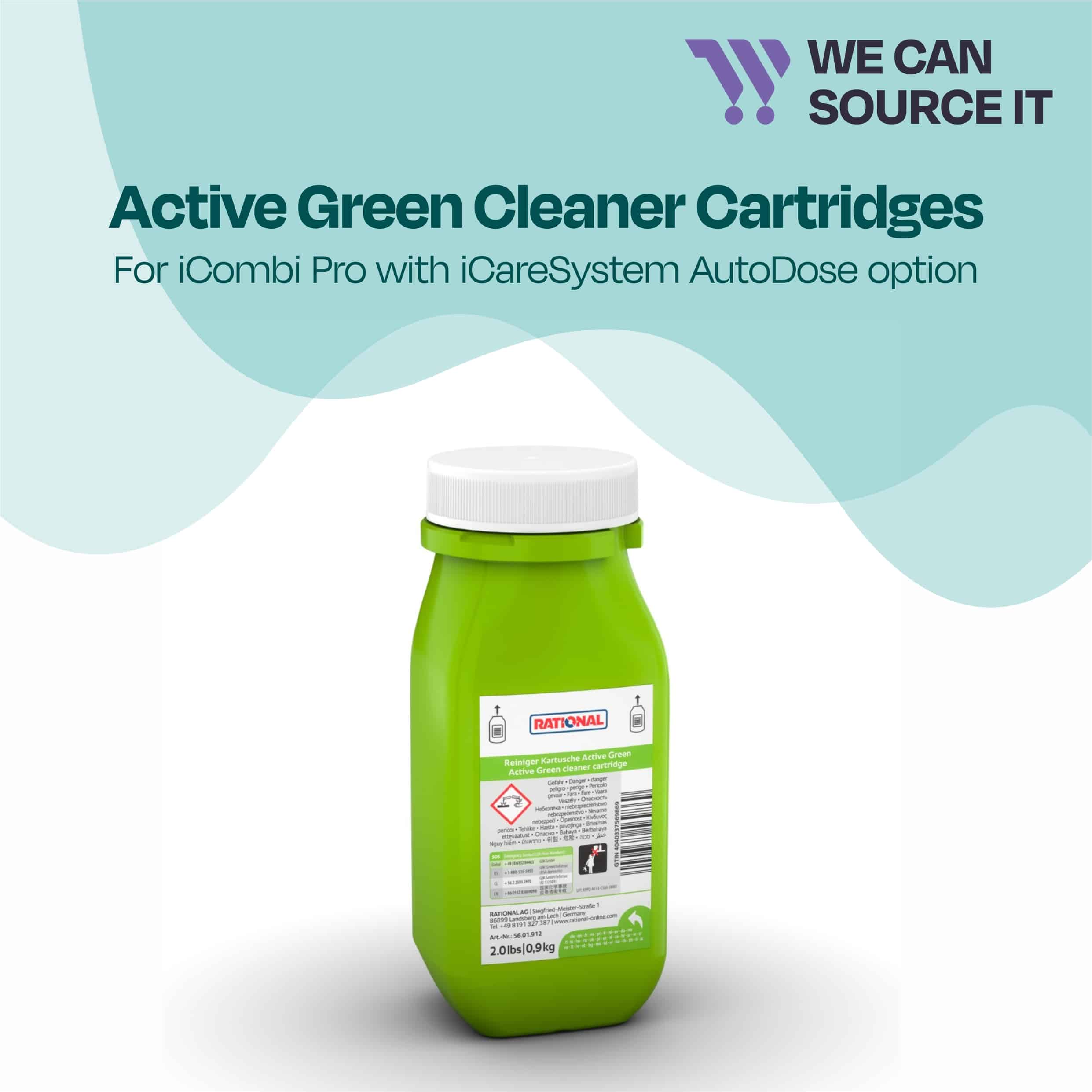 This listing is for a pack of RATIONAL Active Green Cleaner Cartridges, designed for use with RATIONAL iCombi Pro ovens equipped with the iCareSystem AutoDose. Each cartridge contains a powerful, environmentally conscious cleaning solution that is automatically dispensed to maintain optimal hygiene and performance.
