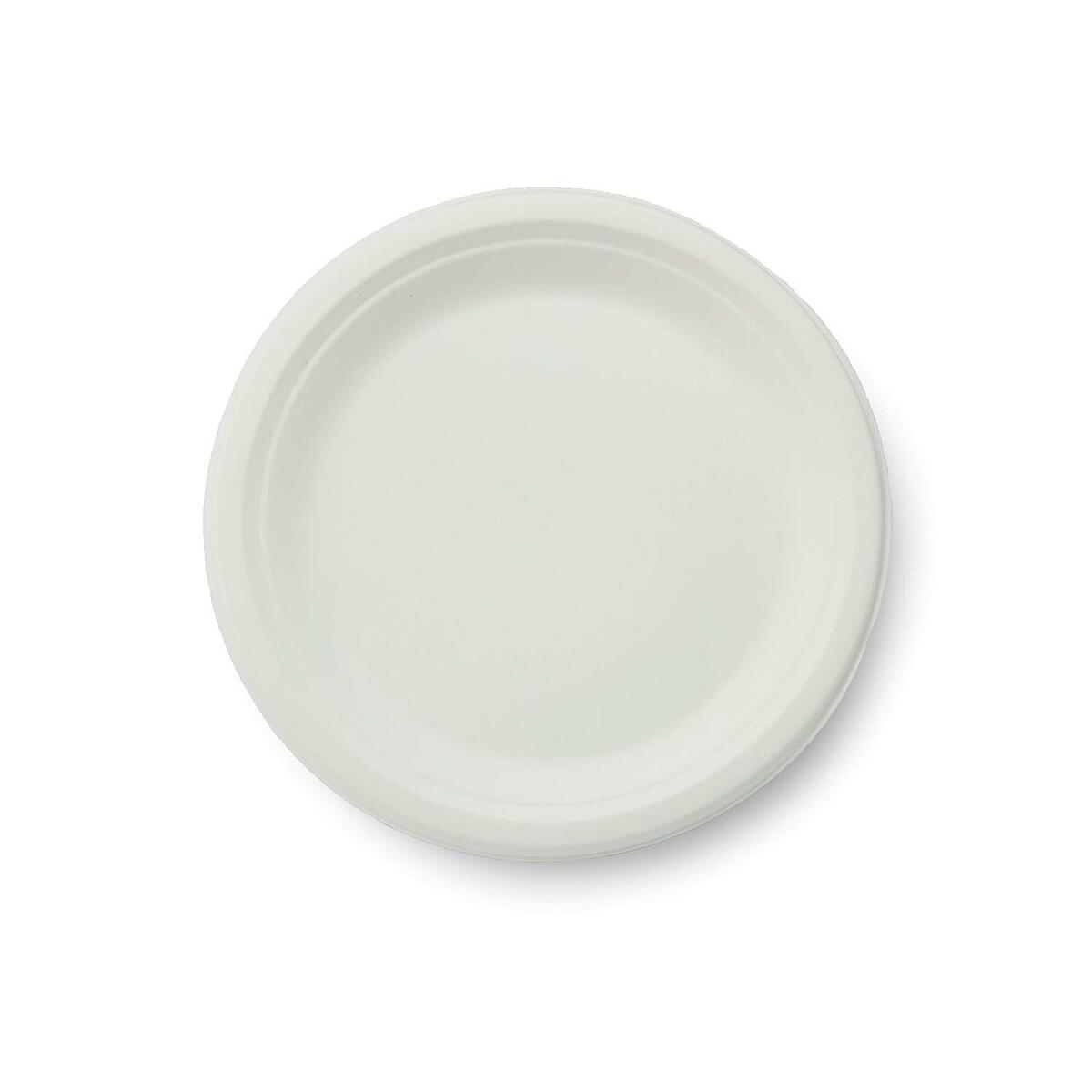 These 9 inch round bagasse plates are sturdy, strong and fully compostable. A great alternative to plastic and foam.