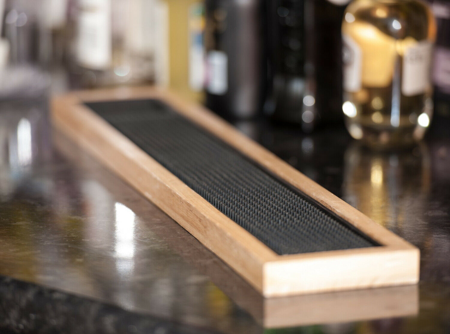 Rubber Bar Mat with Wooden Frame