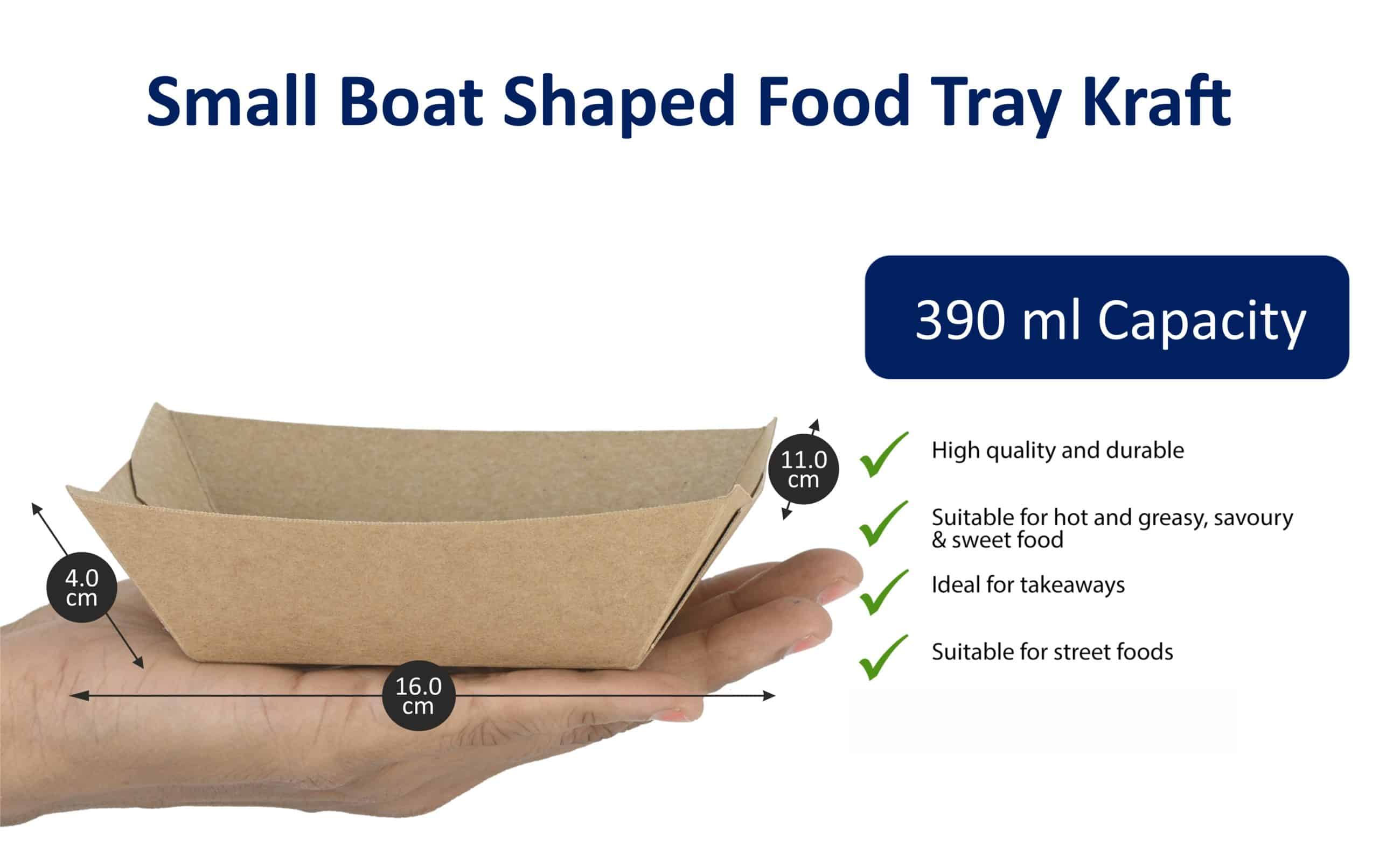 This small food tray is ideally sized for individual portions, measuring 16.0cm x 11.0cm x 4.0 cm (LxWxH) and weighing only 9g. Serve everything from fish and chips to pizza slices with confidence, knowing you’ve made a sustainable choice.