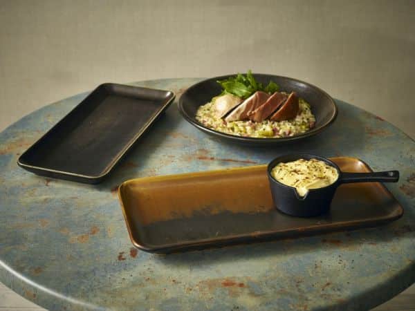 That’s why we’re offering the Terra Porcelain Black Narrow Rectangular Platter 31 x 14cm – Pack of 6. These platters possess an undefined beauty crafted through natural effects and spontaneous reactions in the kiln. The unique glaze formula and high-temperature firing create variations in colour intensity, guaranteeing that no two pieces are exactly alike, resulting in a truly distinctive and characterful look.