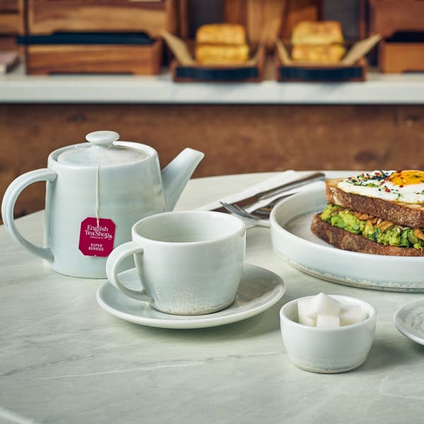 Terra Porcelain’s undefined beauty is crafted through natural effects and spontaneous reactions which occur in the kiln. A unique glaze formula, combined with high temperature firing, results in no two pieces looking exactly alike and colour intensity variations from piece to piece, creating a truly distinctive look. The Pearl Terra Porcelain collection draws inspiration from the iridescent hues and natural beauty of pearls with it’s blend of soft whites, greens and blues which shimmer and shine. Each piece in the collection boasts a luxurious and unique pearlescent finish which adds a touch of opulence to culinary presentation perfect for a spectrum of dishes and cuisines.