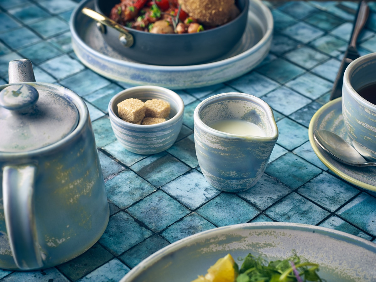 Terra Porcelain’s undefined beauty is crafted through natural effects and spontaneous reactions which occur in the kiln. A unique glaze formula, combined with high temperature firing, results in no two pieces looking exactly alike and colour intensity variations from piece to piece, creating a truly distinctive look. The Seafoam Terra Porcelain collection draws inspiration from the coast with it’s blend of oceanic colours, providing a calming canvas perfect for plating a range of meals and hot drinks. Matching the Terra Porcelain Seafoam collection, our Jug fits perfectly with a tasty pot of tea, alongside a coffee or for serving sauces with mains or desserts.