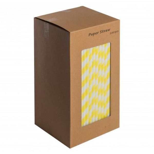 Yellow and White Striped Paper Straws 8″ (20cm) 6mm Bore